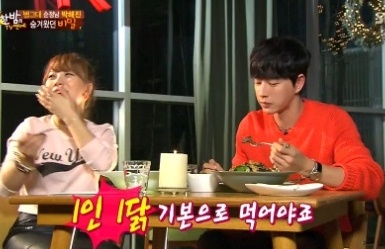 지난 3월 방송된 SBS `한밤의 TV연예`에 출연한 박해진은 식사를 하면서 진행된 인터뷰에서 "6시 이후부터 입이 풀린다"며 "1인 1닭을 해야한다"고 밝혔다.
