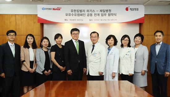 하기스와 제일병원이 지난 26일 오후 2시 서울 충무로에 위치한 제일병원 대회의실에서 `행복한 엄마와 아기를 위한 모유수유캠페인` 업무협력을 체결한 것.