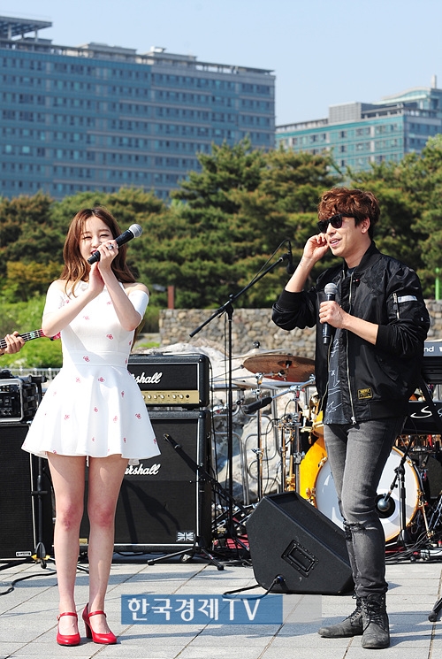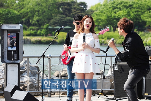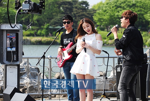 가수 박보람과 그룹 데이브레이크가 경기도 고양시 `일산호수공원`에서 진행된 케이블채널 MBC Music의 `피크닉 라이브, 소풍` 녹화현장에서 무대를 꾸미고 있다.