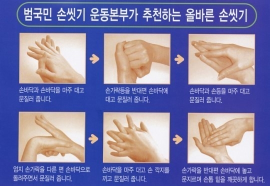 ‘범국민 손씻기 운동본부’가 추천하는 올바른 손씻기의 방법은 여섯 단계로 정리해볼 수 있다.