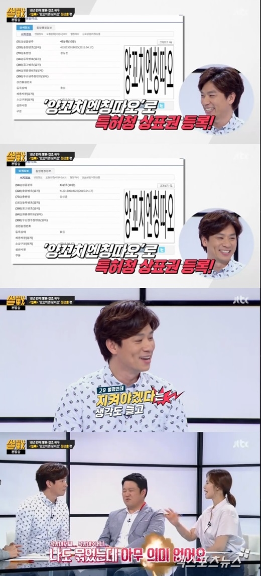 `썰전 정상훈` 방송인 정상훈이 썰전에 출연해 `양꼬치엔 찡따오` 상표 등록 사실을 밝혔다.