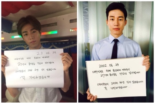 이들은 "대한민국을 위해 용감하게 싸워주신 27인의 용사 분들 진심으로 감사드립니다. 여러분들의 고귀한 희생 잊지 않겠습니다. 꼭 기억하겠습니다"라는 자필 글을 통해 연평해전 13주기를 추모했다.