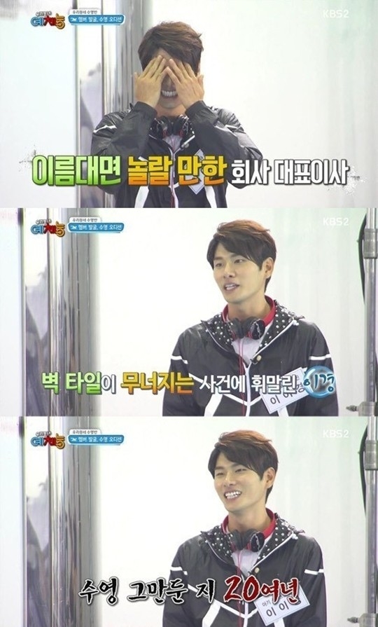 7일 방송된 KBS2 `우리동네 예체능` 수영 편에 출연한 이이경은 수영 오디션 2조에 등장해 자신이 출연했던 SBS 드라마 `별에서 온 그대`를 언급하며 자기소개를 했다.