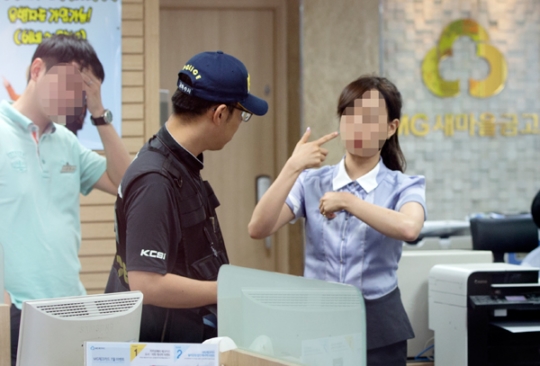 경찰에 따르면 30대로 추정되는 남성이 새마을금고에 들어와 권총으로 보이는 물건으로 직원을 위협해 500만∼600만원을 챙겨들고 도주했다.