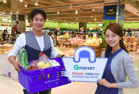 한편 이베이코리아는 지난 7월 16일 홈플러스와 업무 협약을 맺고 24일 G마켓 내에 홈플러스 전문관을 오픈했다. 이곳에서는 홈플러스 점포에서 취급하는 3만 여개의 상품을 동일하게 구매할 수 있고 오후 4시 이전 주문 시 상품을 당일에 냉장배송 해준다.