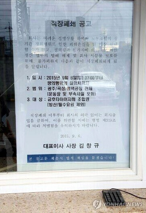 사측은 직장폐쇄 사실을 노조와 조합원들에게 통보하고 회사 정문을 봉쇄하는 한편 노조원들의 출입을 통제하고 있다.