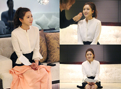 공개된 사진 속 오지은은 메이크업을 받으며 시종일관 밝은 미소를 띄우고 있는 모습이다. 특히 하나로 깔끔하게 올려 묶은 머리와 정장 옷차림이 단아한 기품을 더하고 있다.