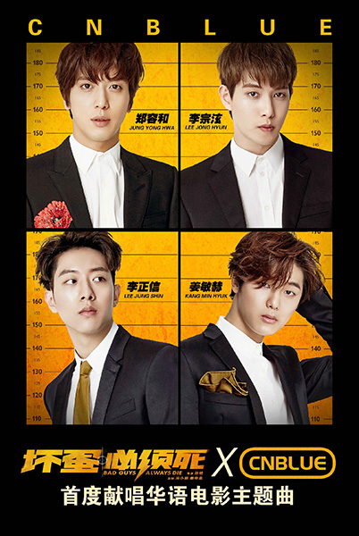 밴드 씨엔블루(정용화 이종현 강민혁 이정신)가 한중 합작 영화 ‘나쁜 놈은 반드시 죽는다’의 주제곡을 부른다.