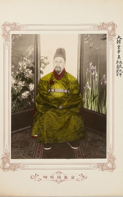 특히 흑백사진으로 인화한 뒤 황제의 복식인 노란색 황룡포와 보라색 익선관 등 일부를 채색한 점이 독특하다.