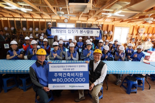 산업은행은 올해 주택 건축비 8천만원을 지원했으며 임직원들의 봉사활동을 통해 `희망의 집짓기` 사업에 참여하고 있습니다.