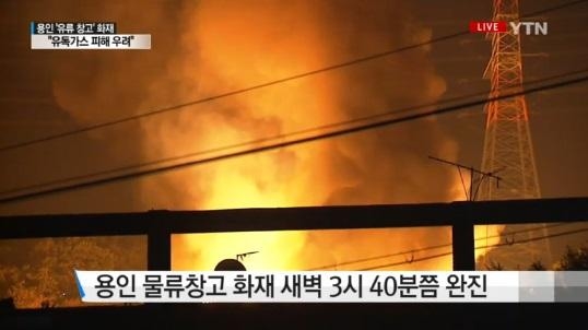 지난 7일 오후 9시 35분께 경기도 용인시 처인구 모현면의 한 유류보관 창고에서 불은 6시간 만에 진화됐지만 유독물질을 보관하던 창고라 유독가스로 인한 피해가 우려된다. 아직 인명피해는 보고되지 않았다.