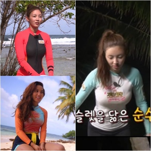 유승옥 김희정 이미도는 `정글의법칙` 최초로 여성 3명으로 출연했다. 유승옥 김희정은 래시가드를 입고 볼륨몸매를 뽐냈다. 이미도도 섹시한 여배우다운 면모를 뽐냈다.
