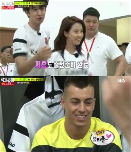 이날 송지효는 박지성팀 라커룸을 방문해 선수들을 격려했다. 특히 이탈리아 국가대표 출신 잠브로타, 엘 샤라위와 인사를 나눴다. 엘 샤라위는 송지효를 보자 수줍은 미소를 지었다.