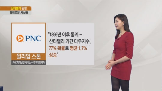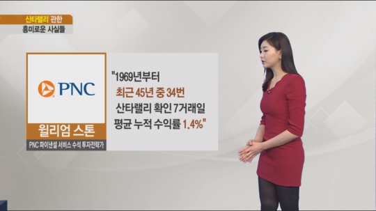 PNC 파이낸셜 서비스의 윌리엄 스톤 수석 투자전략가는 이 산타랠리 현상의 최근 경향에 대해 자세한 분석을 내놨는데요. 1969년 이래로 최근 45년 중 34번이나 산타랠리 현상이 나타난 것으로 확인됐으며, 매년 이 7거래일동안의 누적 수익률 평균은 1.4%였다고 하구요.