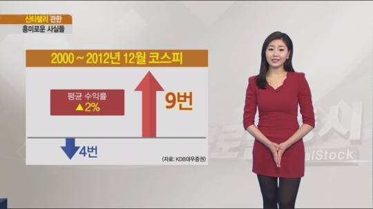 국내 증시에서도 매년 12월은 연말 효과가 기대되는 달인데요. 2000년부터 2012년까지 코스피의 12월 평균 수익률은 2%를 기록하면서 강세를 보였구요. 총 13번 중 9번 상승했습니다.