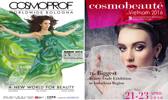 ▲ 코스모프로프 볼로냐 미용 전시회(왼쪽) 코스모뷰티 베트남 화장품 미용 박람회(오른쪽) 포스터 (이미지 제공 : 코이코)