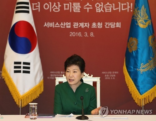 <앵커> 박근혜 대통령은 국내 서비스산업이 규제와 정쟁, 기득권에 발목 잡혀 선진국과의 격차를 좁이지 못하고 있다고 지적했습니다.