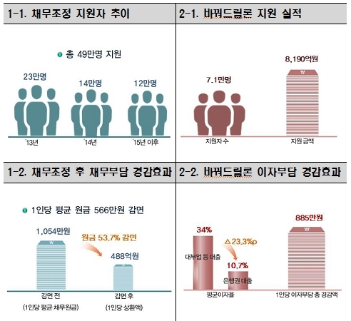 또 고금리 대출을 은행 대출로 전환해 주는 바꿔드림론 지원으로 지원대상자 1명이 5년간 평균 885만원의 이자부담 경감 혜택을 받을 것으로 기대됐습니다.