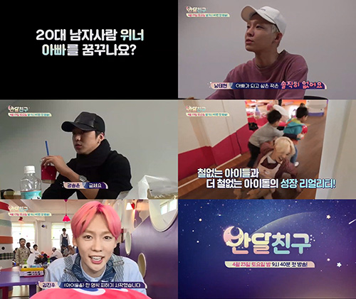 영상에서 위너는 ’20대 남자 위너 아빠를 꿈꾸나요?’라는 질문에 머뭇거리며 “솔직히 없다.”, “글쎄요.” 등 당황하는 모습을 보여 웃음을 자아냈다 또 ‘반달친구’가 마냥 따뜻하고 훈훈하게 아이를 키우는 단순한 육아 예능이 아님을 전하는 영상과 ‘철없는 아이들과 더 철없는 아이돌의 성장 리얼리티’라는 소개문구가 등장해 호기심을 자극했다.