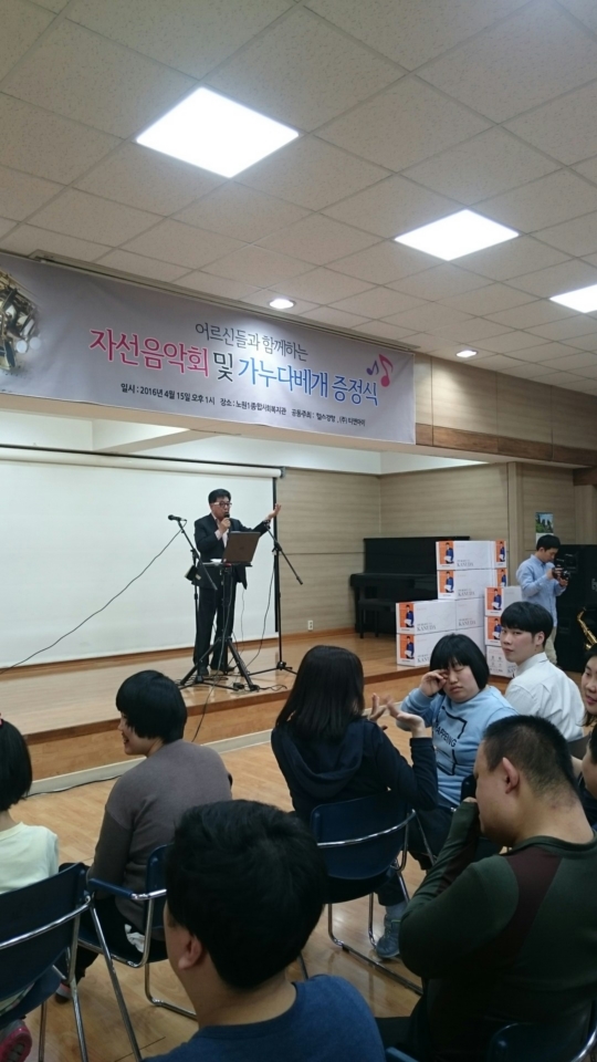 `가누다`의 브랜드 오너인 ㈜티앤아이는 15일 오후 1시 노원구 노원1종합사회복지관에서 자선음악회 및 가누다 베개 증정식을 열었다.