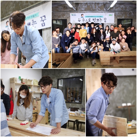 이날 가구 만들기 활동은 봉사자들이 직접 디자인한 가구를 현장에서 제작하는 것으로 진행됐다. 이천희는 현장에서 보다 쉽게 가구를 제작할 수 있도록 사소한 것 하나하나까지 조언을 아끼지 않는 모습으로 리더 역할을 톡톡히 해냈다.