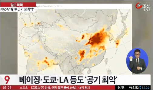 | 한국 미세먼지 180개국 중 173위, 세계 오염 순위는? (사진=TV조선 뉴스 캡처) |