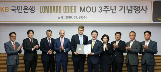 KB국민은행(은행장 윤종규)은 스위스 PB 전문은행인 롬바드 오디에(Lombard Odier)와 전략적 업무 제휴 확대를 위한 기념식을 개최했다고 25일 밝혔습니다.