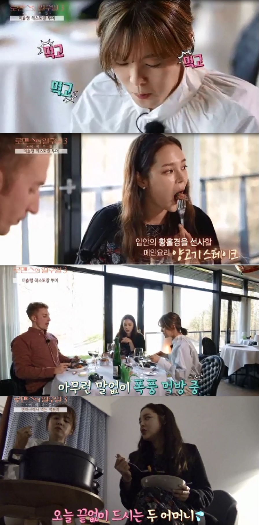 3일 방송되는 MBC에브리원 `로맨스의 일주일3 :여배우들` 6회에서는 미슐랭 가이드에 오른 ‘프리드리히소저’ 레스토랑에서 덴마크 음식을 즐기는 박시연과 김성은의 모습이 그려진다.