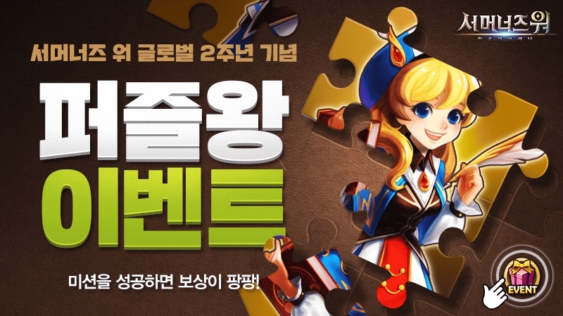 모바일 게임 기업 컴투스가 RPG게임 `서머너즈 워: 천공의 아레나`의 글로벌 서비스 2주년을 기념해 오는 26일까지 `퍼즐왕 이벤트`를 진행합니다.