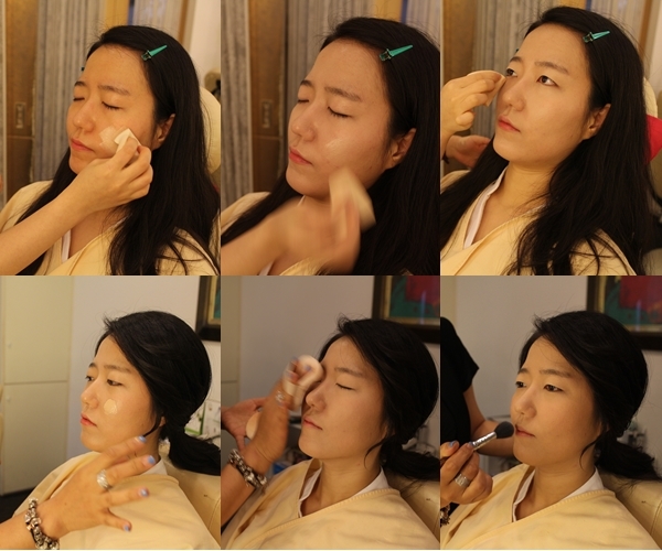 ① 파운데이션으로 피부톤을 잡아줍니다.(노란기와 홍조를 커버합니다)