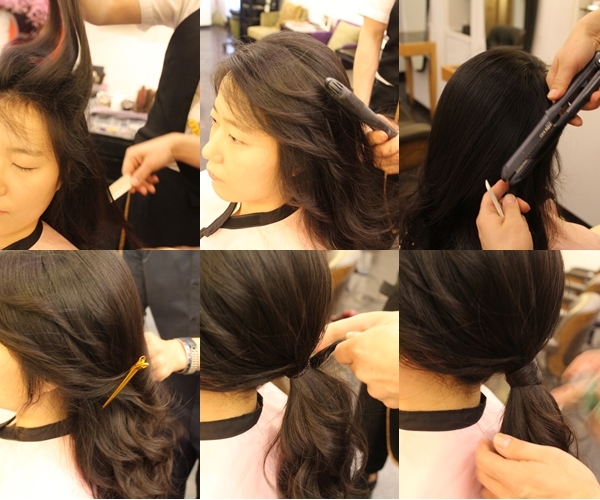 파크뷰 칼라빈 헤어전문 서일주 원장은 “모델은 신부 머리를 연출하기에 헤어 컬러가 너무 어두워요. 이는 스타일을 연출했을 때 큰 변화를 느끼지 못합니다. 때문에 신부 머리를 하기 전에 자신의 얼굴톤에 맞게 염색을 하는 것이 좋습니다. 모델은 왼쪽 두상 부분이 도드라져 보입니다. 때문에 양쪽 두상에 볼륨감을 살리는 것이 좋습니다. 모델은 머리를 묶어 올리면 얼굴이 커 보일 수 있습니다. 머리에 웨이브를 만들고 자연스럽게 내린 후 포니테일 스타일을 연출해 풍성한 이미지를 연출하도록 하겠습니다"라고 전했습니다.