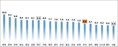 아파트의 경우 서울이 평균 4.5%로 가장 낮았고 강원도가 7.3%로 가장 높았다. 시·군·구별로는 충남 공주가 8.0%로 최고, 서울 송파구가 4.0%로 최저 수준이다.