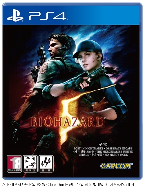 게임피아는 캡콤 아시아와 협력해 `바이오하자드5`의 PlayStation4 와XBOX ONE버전을 국내 정식 발매한다고 12일 밝혔다.