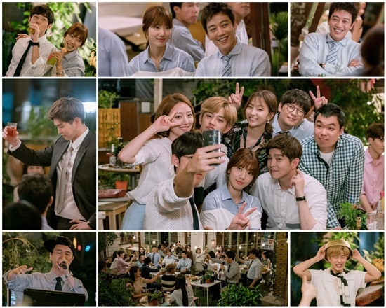 이 밖에도 폭탄주를 들고 멋있게 원샷을 준비 하는 정윤도(윤균상), 카리스마 넘치던 이미지와는 상반되게 스냅백을 뒤집어쓰고 한껏 진지한 모습으로 랩 실력을 발휘해 시청자들을 박장대소하게 만들었던 김태호(장현성), 사발을 뒤집어써도 감출 수 없는 귀여움으로 누나팬들의 무한 사랑을 받은 최강수(김민석)의 모습 역시 활력 넘치는 회식 자리를 합작하고 있다.