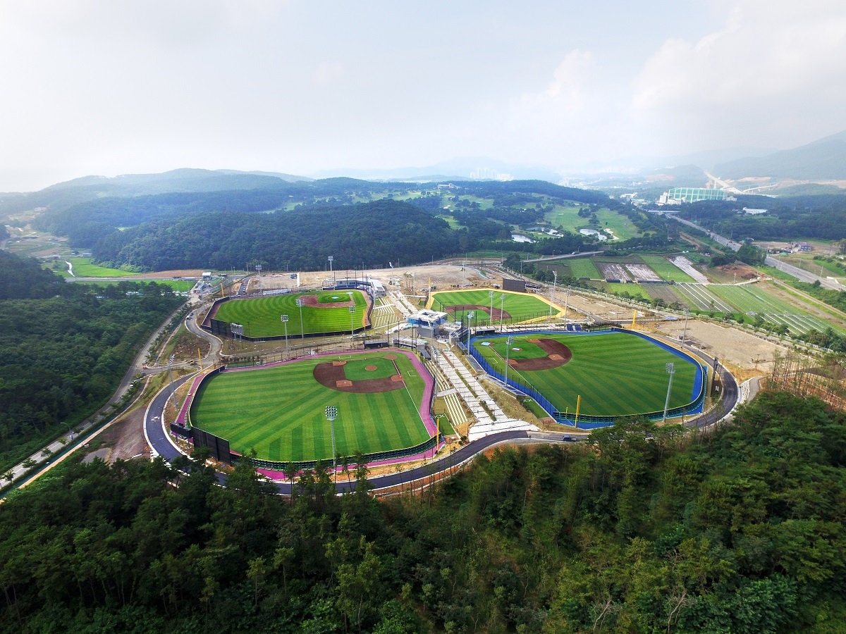 야구장 4곳 중 하나는 CF 122m, LF 98m, RF 98m 규모의 프로 2군 경기장 수준의 천연 잔디 구장으로 프로 경기가 가능하며, 나머지 3곳은 CF 110m, LF 95m, RF 95m 규모의 국내 최고 수준의 인조 잔디 구장으로 조성돼 향후 야구 동호인들을 위한 최고의 경기 공간으로 활용될 예정입니다.