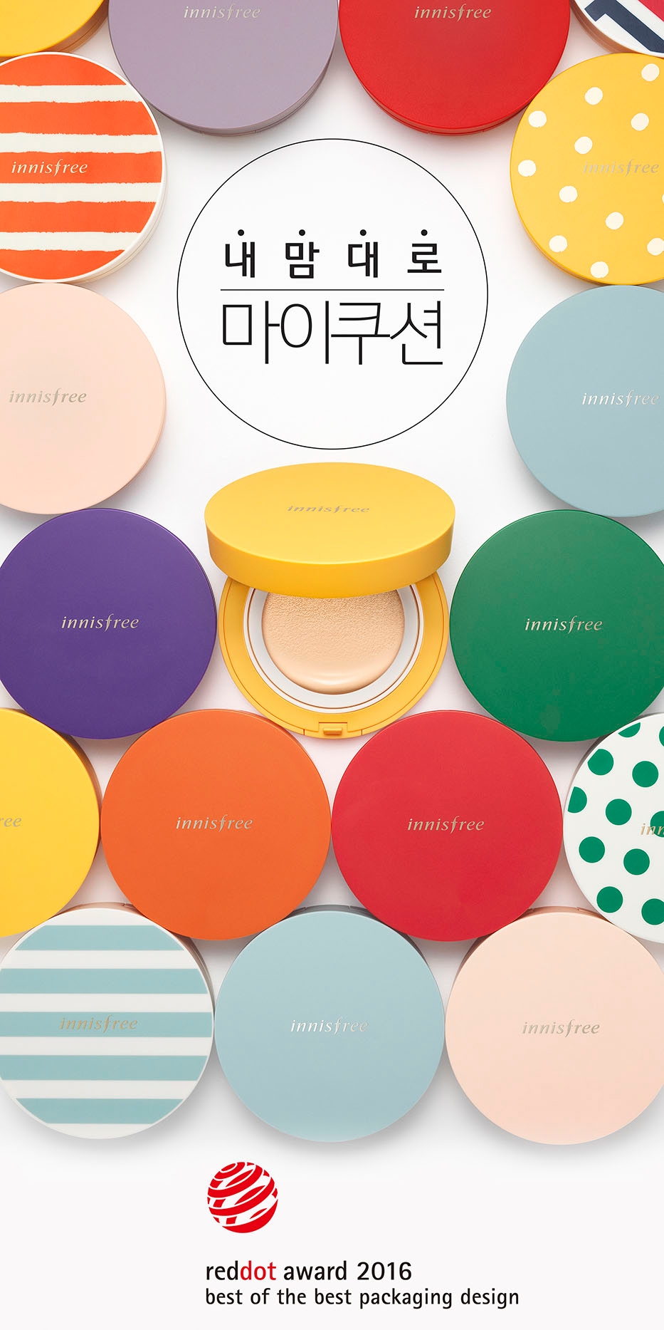 한편, 이번 2016 레드닷 디자인 어워드에서 이니스프리는 `마이쿠션` 외에 `이니스프리 제주 퍼퓸 노트`와 `이니스프리 마이바디`도 커뮤니케이션 디자인 부문 레드닷 본상을 수상했다.