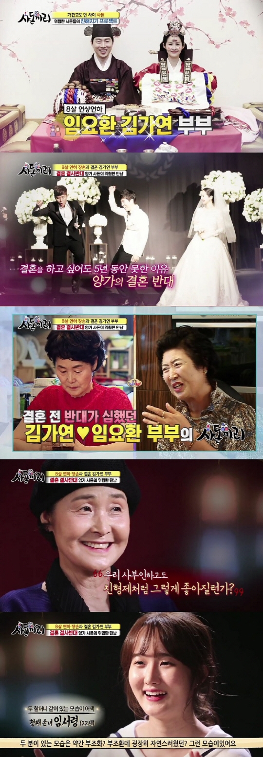 방송에는 말도 많고 탈도 많았던 8세 연상연하 김가연·임요환 부부와 서로 결혼 반대가 심했던 양가 안사돈이 출연한다. 혼인한 두 집안의 부모들끼리 만난다면 과연 무슨 일이 벌어질까? 방송에서는 양가의 결혼 결사반대 이유와 함께 5년간의 반대 후 이들 부부의 결혼을 허락하게 된 계기는 무엇인지 등 김가연?임요환 부부의 `사돈끼리 어색한 만남`을 그려낼 전망이다.