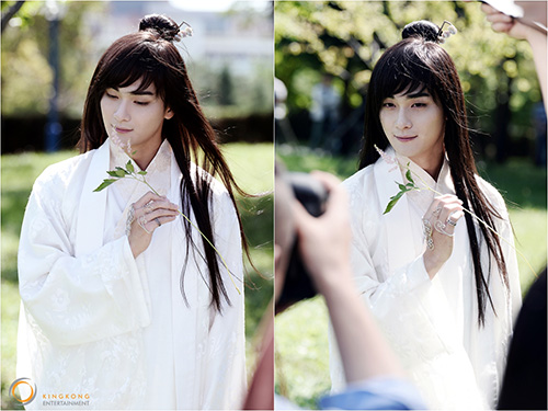 15일 소속사 킹콩엔터테인먼트 측은 KBS2 새 월화드라마 ‘화랑(花郞)’에서 여울 역을 맡은 조윤우의 포스터 촬영 비하인드 컷을 공개했다. 조윤우가 맡은 여울은 향기롭지만 날카로운 가시를 품은 인물.