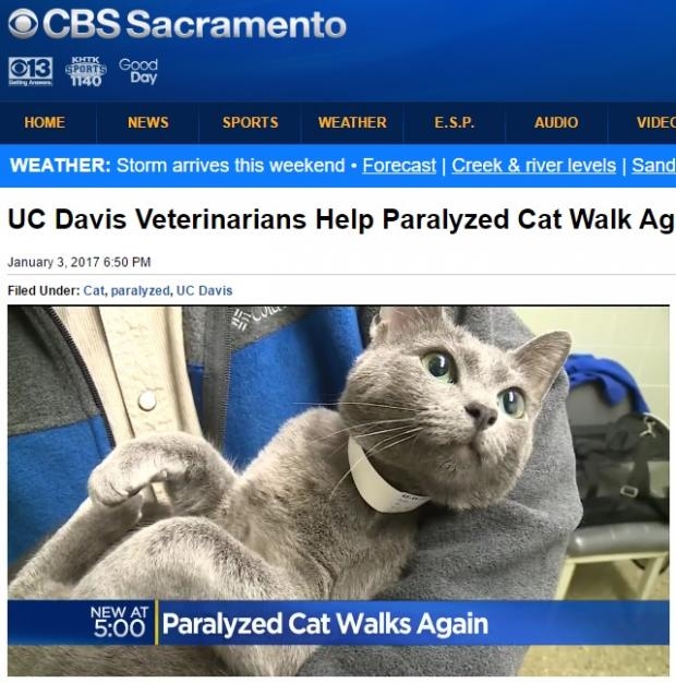 하반신 마비 고양이가 척추 제거 수술을 받고, 다시 걷게 됐다고 미국 CBS13 방송이 지난 3일(현지시간) 전했다.