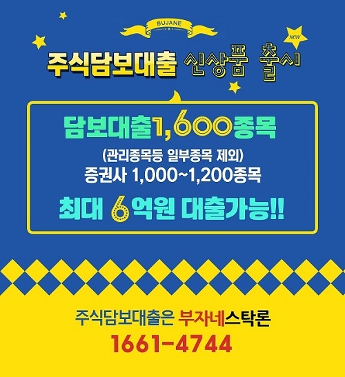 《부자네 스탁론☎ 1661-4744》이 이번에는 획기적인 {주식 담보대출} 상품을 출시, 상담 신청만 따로 예약을 해 두어야 할 정도로 고객들의 문의가 그야말로 쇄도하고 있다.