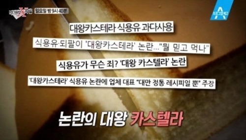 한편 앞서 지난 12일 방송되었던 `먹거리 X파일`에서는 대왕 카스텔라의 촉촉한 식감이 식용유를 들이붓기 때문이며 분유와 액상 계란을 쓰는 곳도 있다고 고발했다. 방송 이후 관련 매장 매출이 급격하게 감소하고 있는 것으로 전해졌다. 일부 영세 매장이나 자영업자는 폐업까지 했다는 소식이 들리기도 했다.