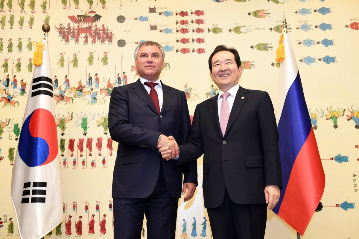 볼로딘 러시아 하원의장은 "양국은 예전부터 좋은 관계"라면서 "한국의 새 정부 출범을 계기로 한·러 관계가 더욱 돈독해지길 기대한다"고 화답했습니다.