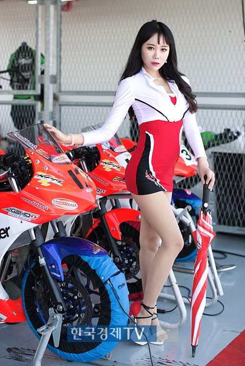 레이싱모델 김류아가 전라남도 영암 국제자동차경주장에서 열린 `2017 KIC-CUP 투어링카 레이스` 3라운드에서 포즈를 취하고 있다.