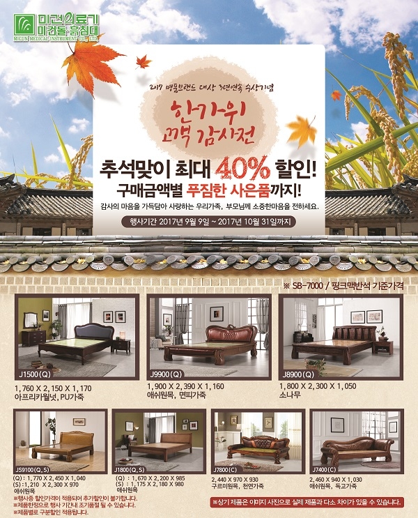 미건의료기(대표 이재화) 돌침대사업본부는 돌·흙침대 전 품목을 대상으로 한가위 고객 감사전을 진행한다고 8일 밝혔다.