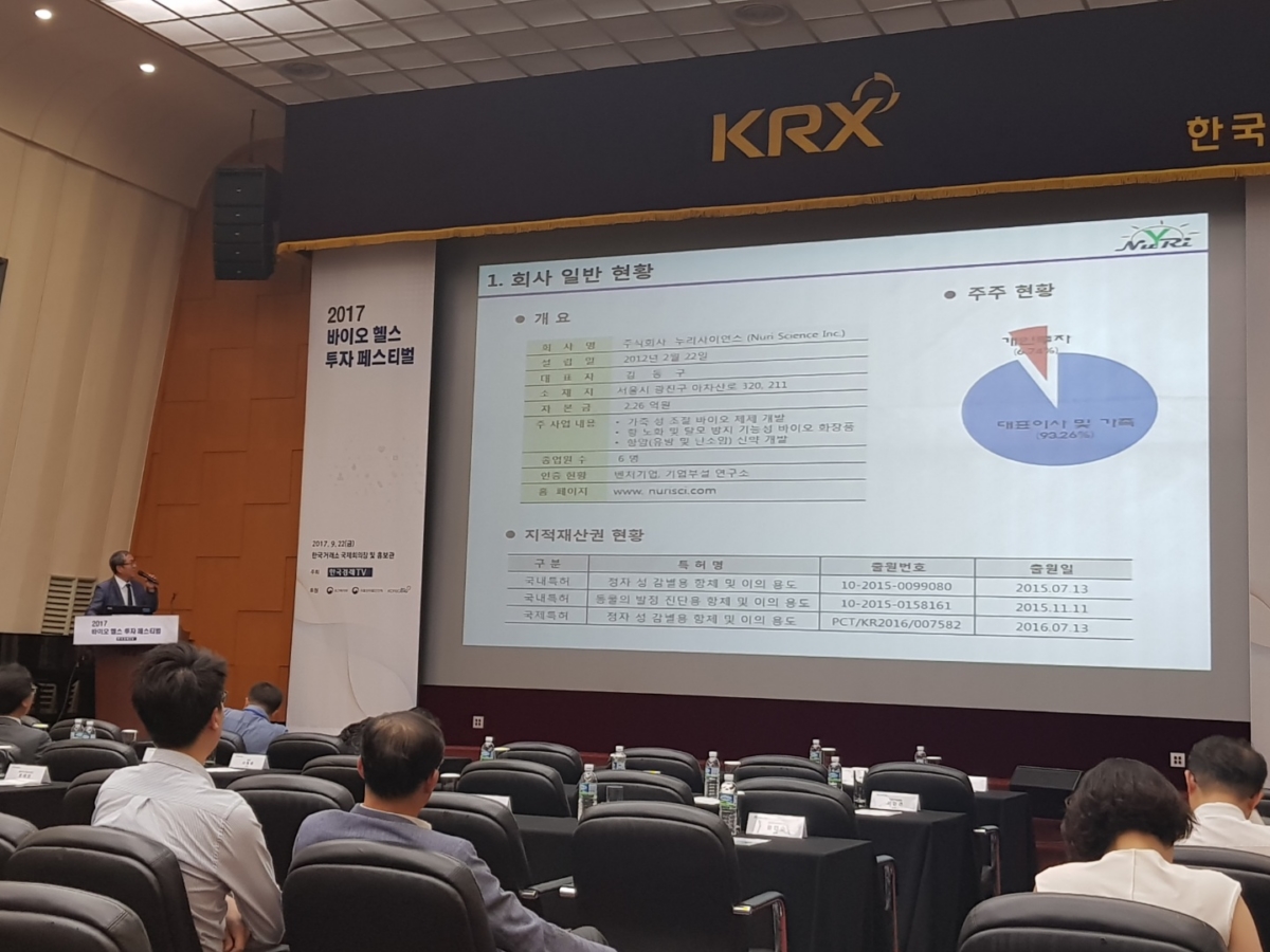 한국경제TV가 주최한 `2017 바이오 헬스 투자 페스티벌`에 김동구 누리사이언스 대표가 참여해 "성 조절 산업은 결국 인간의 식량이 달려 있기에 절대적으로 중요한 산업이다"라고 말했습니다.