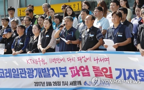 KTX 승무원들이 포함된 코레일 자회사 코레일관광개발 소속 노조원들이 임단협 결렬을 이유로 29∼30일 이틀간 한시적 파업에 돌입했다.