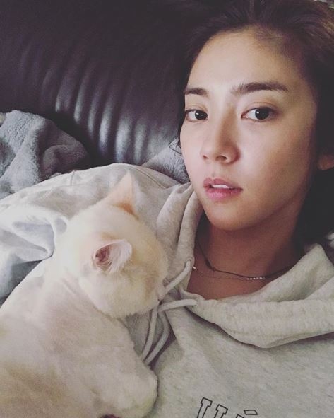 사진 속에는 편안한 차림으로 반려묘를 안고 소파에 앉아 카메라를 응시하고 있는 손담비의 모습이 담겨있다.