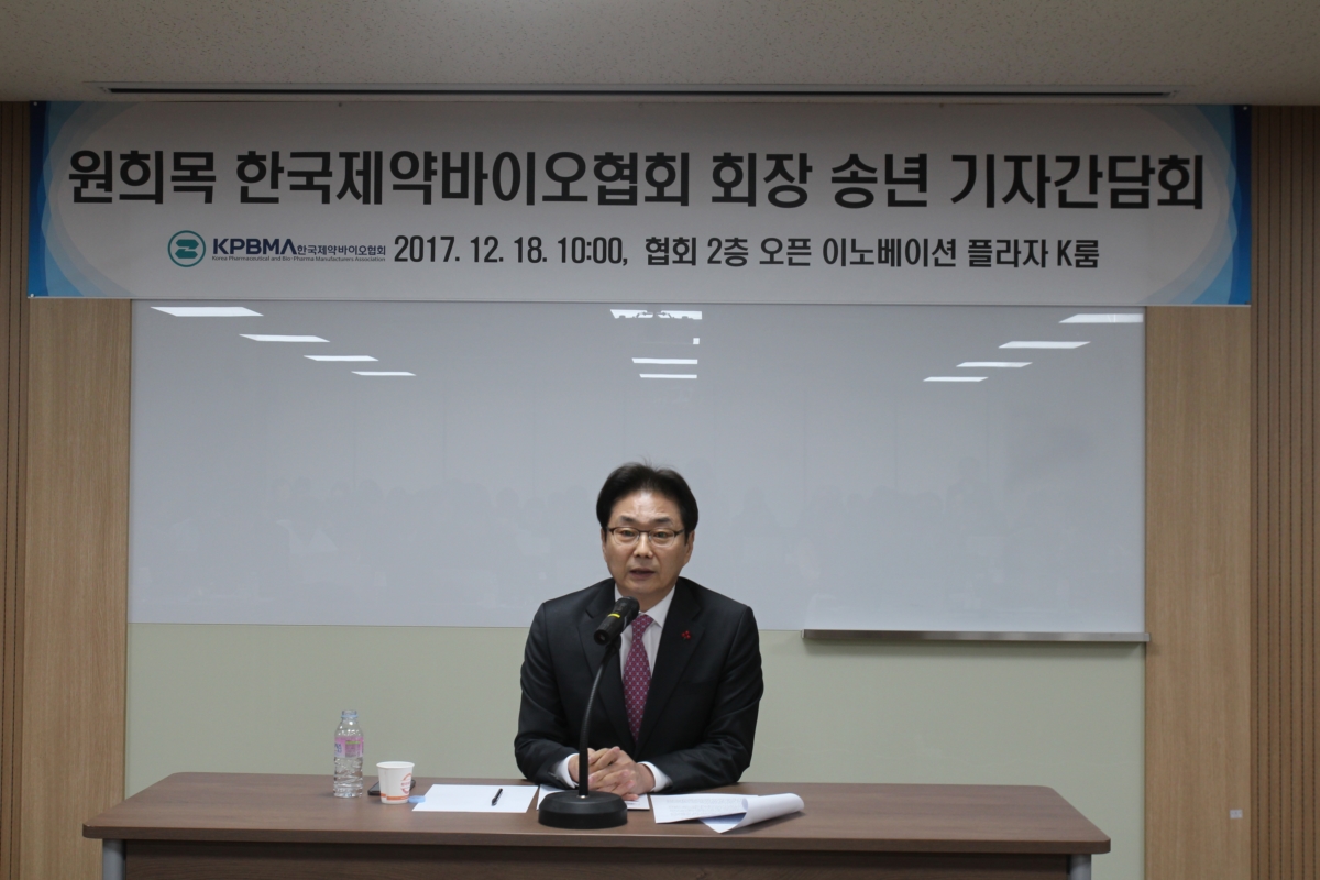 18일 원희목 한국제약바이오협회 회장은 서울 방배동 협회관에서 열린 송년 기자간담회를 통해 이 같이 밝혔습니다.