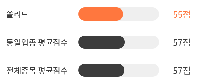 AI 인공지능 분석을 통한 쏠리드의 종목 종합 스코어는 55점을 기록했다.