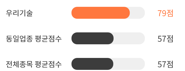 이는 동일 업종 평균점수인 57점과 시장 평균점수인 57점를 상회하는 수치였다.